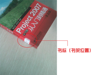 一般在上面第2步錄入資料的過程中,會自動產生書標。當然,若您不想用自動產生的書標,也可以根據自己的需求手工錄入書標內容,然后打印到標簽紙上(瑞天圖書管理軟件中有對應的書標打印功能;若是其他公司的沒有書標打印功能的軟件,手工書寫也可以),再貼到對應的圖書的書脊上,如上圖所示。