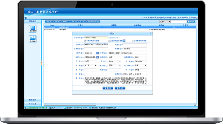 錄入書籍信息時,只需輸入書籍的ISBN碼,即可遠程獲取服務器中的圖書書目信息。