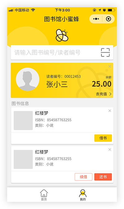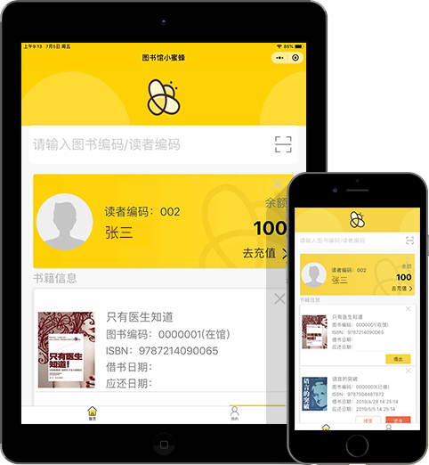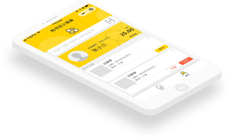 北創(chuàng)“圖書館小蜜蜂”微信小程序可實(shí)現(xiàn)圖書管理員手機(jī)給讀者辦理借書、還書、續(xù)借管理。 專為圖書館管理員打造一種移動(dòng)輕松自由的辦公環(huán)境。